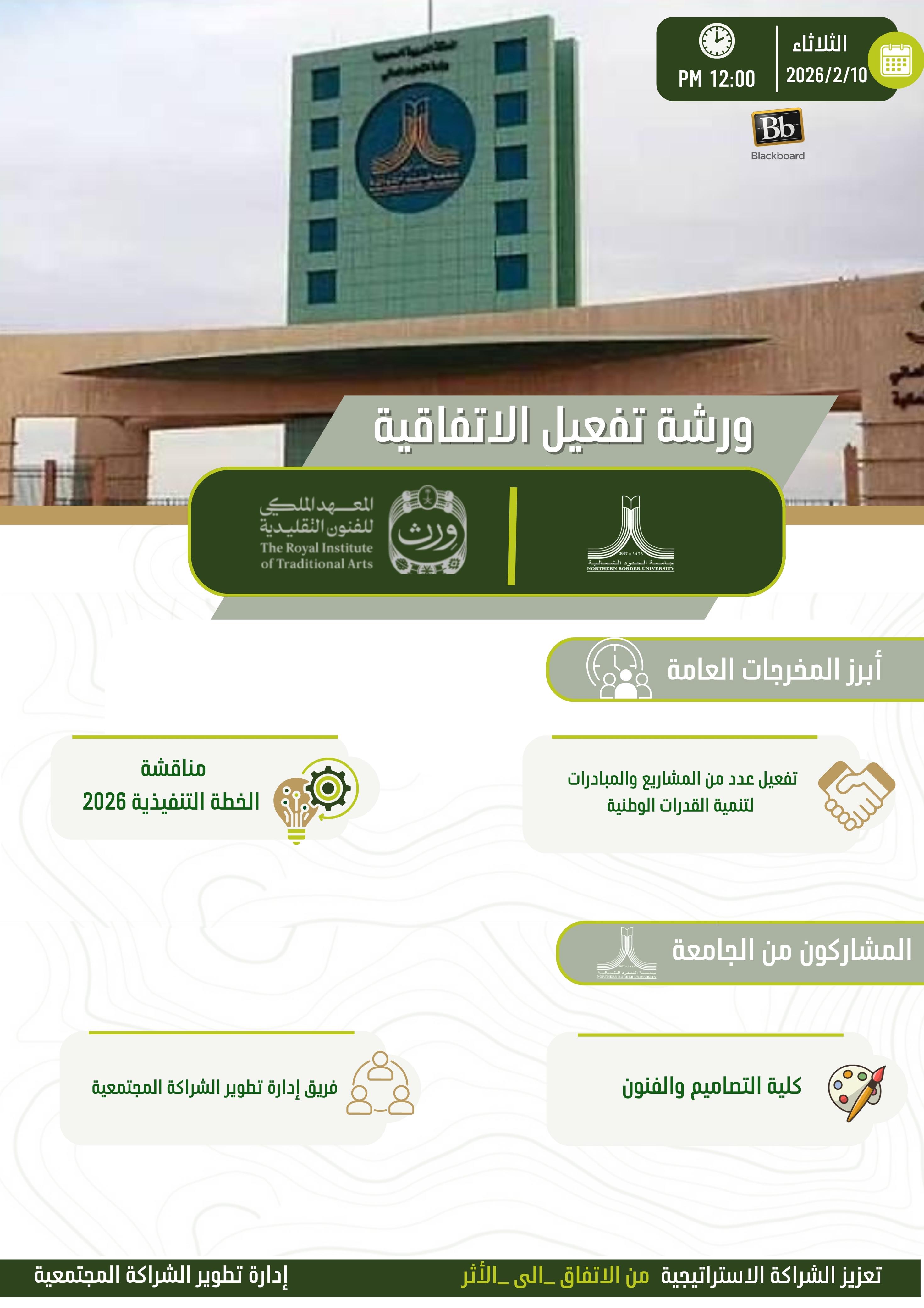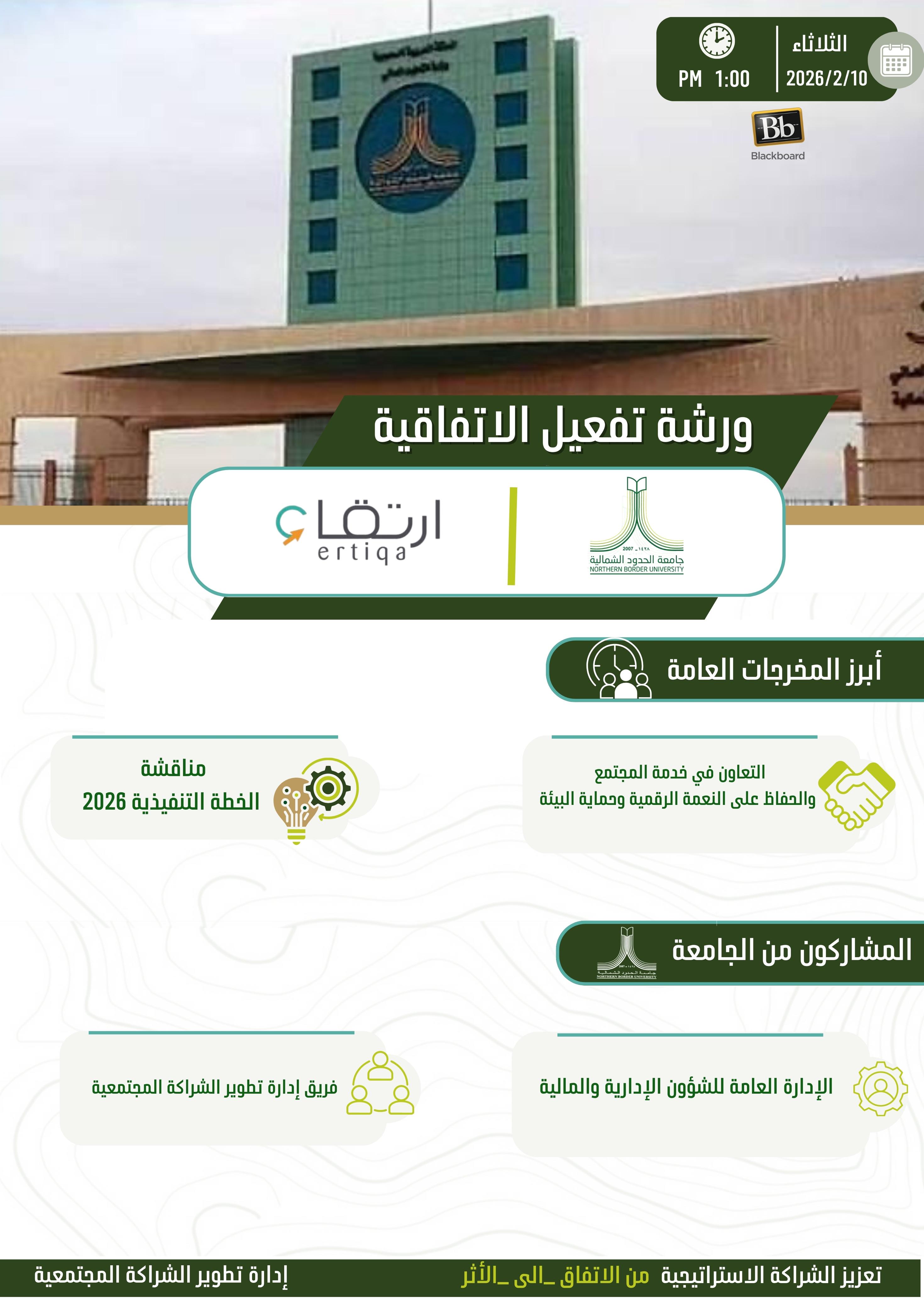 أثر يبقى 20 شَعبان 1447الجامعة محرك التنمية المستدامة: تكامل المسؤولية العمل التطوعي الشراكة المجتمعية دور الجامعة ومنسوبيها: بناء، تأثير، استدامة العمل التطوعي (عطاء) المسؤولية المجتمعية (التزام) الشراكة المجتمعية (تكامل)